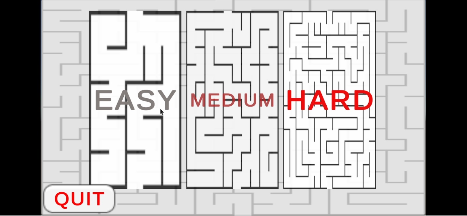 The maze has 3 level: easy normal hard